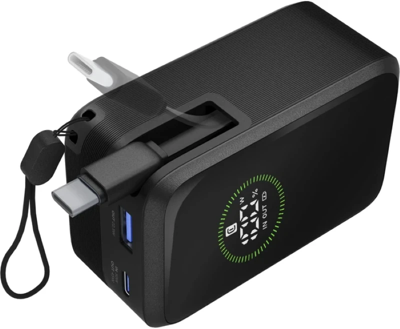 Die Power Bank Roller 10.000 ist die ideale Lösung für alle, die Leistung und Komfort in einem Gerät suchen. Mit einer Kapazität von 10.000 mAh und einer Ausgangsleistung von bis zu 45 W bietet sie bis zu 72 Stunden zusätzliche Akkulaufzeit. Ausgestattet mit einem integrierten, einziehbaren USB-C-Kabel, einem USB-C-Anschluss (30 W Eingang / 45 W Ausgang) und einem USB-A-Anschluss mit bis zu 22,5 W ermöglicht sie das gleichzeitige Laden von bis zu drei Geräten. Das integrierte LCD-Display zeigt Ladestand und Leistung in Echtzeit an. Kompakt und tragbar – perfekt für Smartphones, Tablets und Laptops. Dank des mitgelieferten Tragegurts lässt sie sich bequem überallhin mitnehmen.